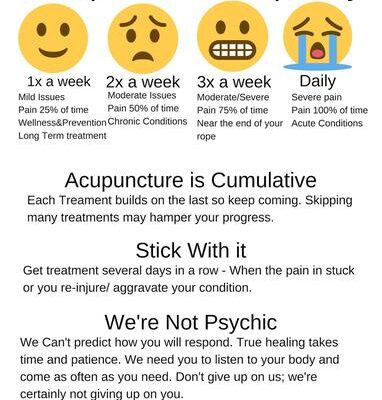 How Often Should I Get Acupuncture? Posted on September 7, 2022 by sacacu This handy infographic from our friends at Boynton Beach Community Acupuncture helps recommend an appropriate treatment frequency: